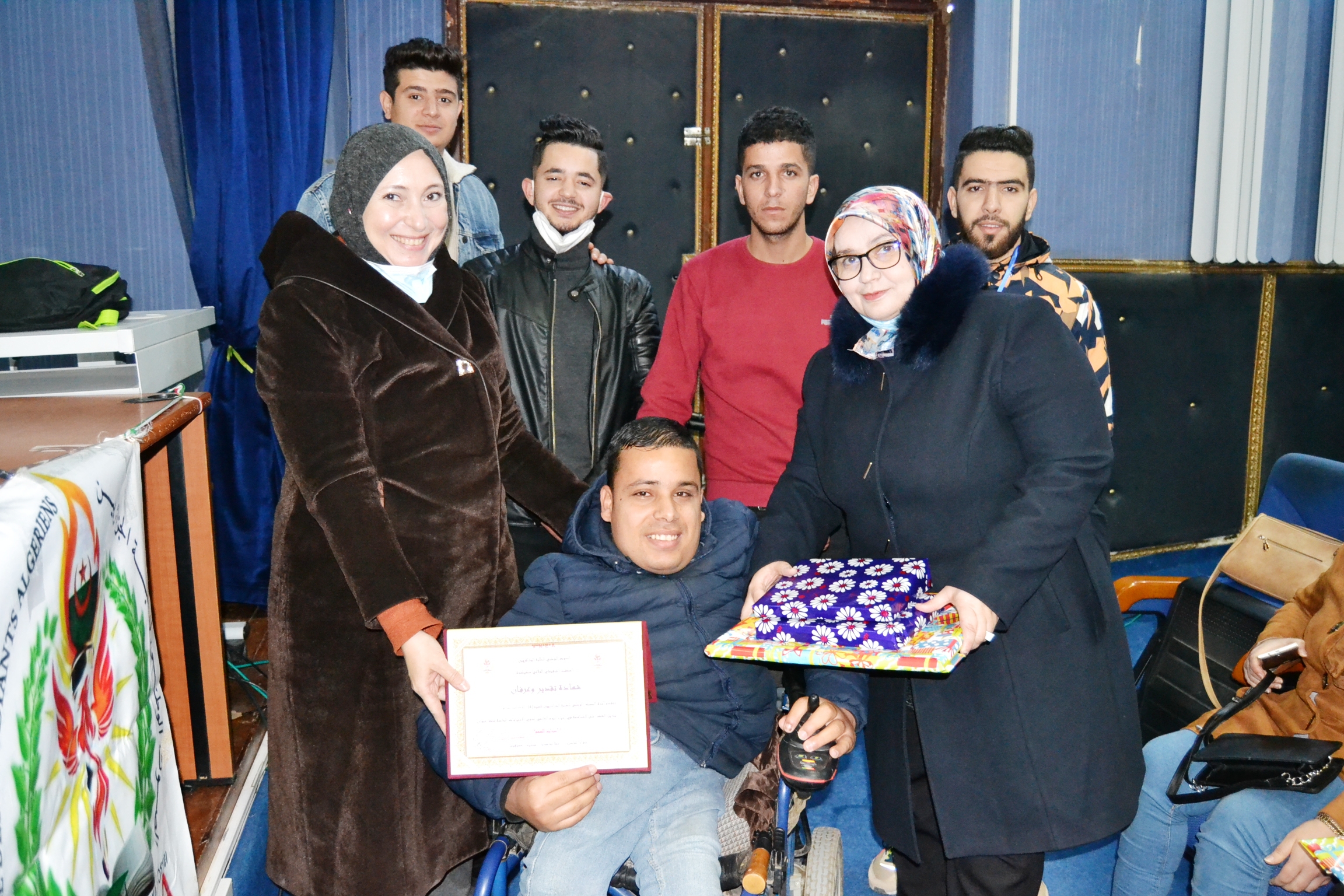 بحضور نواب مدير الجامعة و السيدات و السادة عمداء الكليات إلى جانب أساتذة و طلبة، و تحت شعار ذوي الهمم أحيا التنظيم الطلابي الصوت الوطني للطلبة الجزائريين VNEA صباح اليوم 09 ديسمبر 2021 بقاعة المحاضرات الكبرى اليوم العالمي لذوي الاحتياجات الخاصة المصادف للثالث من شهر ديسمبر من كل سنة حيث تم تكريم الطلبة من هذه الفئة تقديرا و عرفانا لهم على اجتهادهم و عزمهم على النجاح بالرغم من نقص الامكانات و بالمناسبة ناشد هؤلاء الطلبة المسؤولين بتحسين ظروف تمدرسهم بتوفير طابعات البراي و تهيئة ممرات لذوي الإعاقة الحركية كما استحسنوا هذه المبادرة .في الختام تم تكريم الحاضرين من الطاقم الاداري للجامعة بما فيه خلية الاعلام و الاتصال.