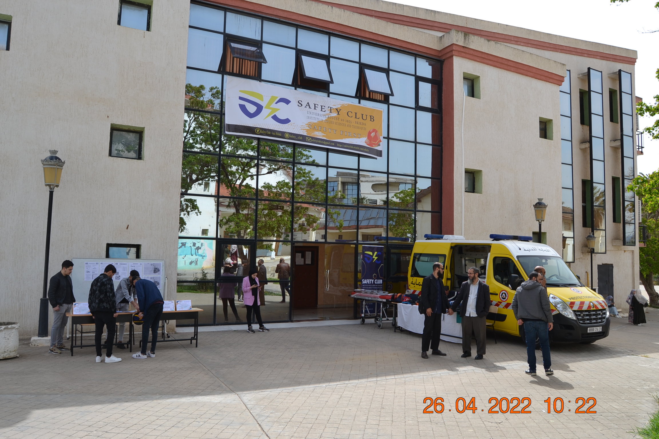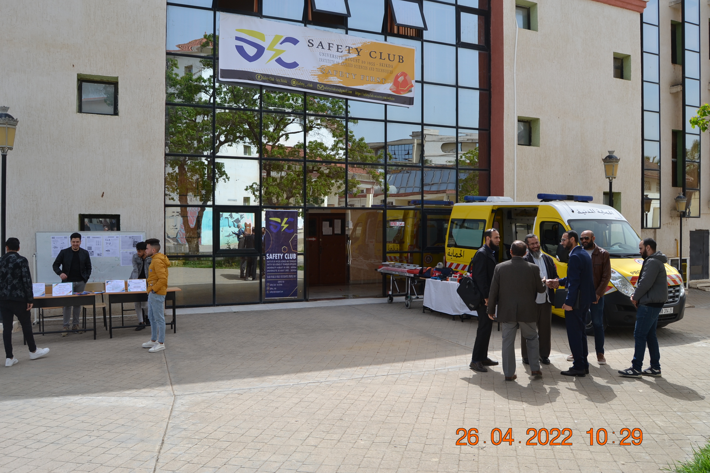 نظم النادي العلمي safety club  بالتنسيق مع معهد العلوم و التقنيات التطبيقية لجامعة سكيكدة ISTA صباح اليوم 26 افريل  2022 ملتقى علمي موسوم : اليوم العالمي للصحة و الأمن في العمل و هذا إحتفالا بهذه المناسبة العالمية  المصادفة لـلــثـامن و العشرين من شهر أفريل من كل سنة.