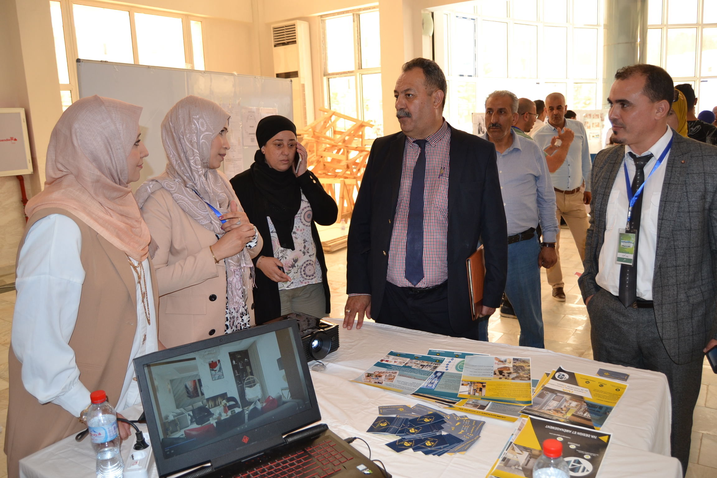 بالموازاة مع هذه الورشات تم اقامة معرض لعدد من المقاولين من خرجي الجامعة و معاهد التكوين  لتقديم مقاولاتهم  و التعريف بها ببهو قاعة المحاضرات الكبرى .