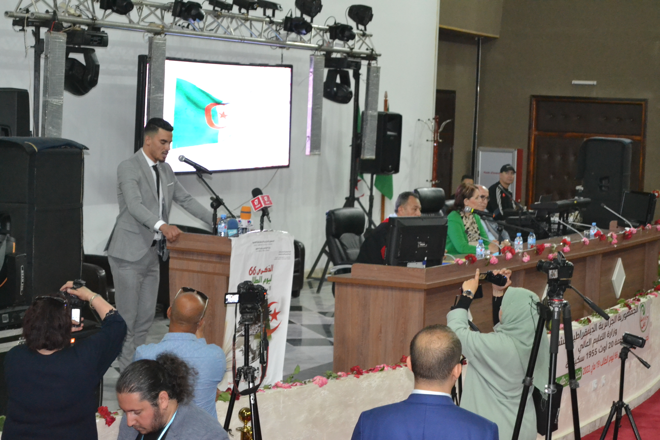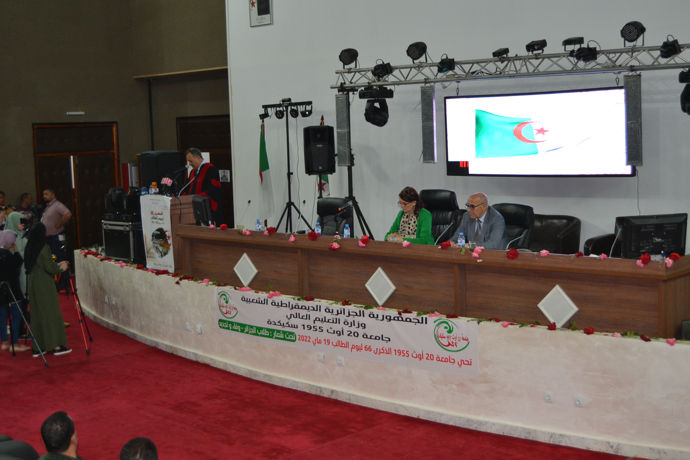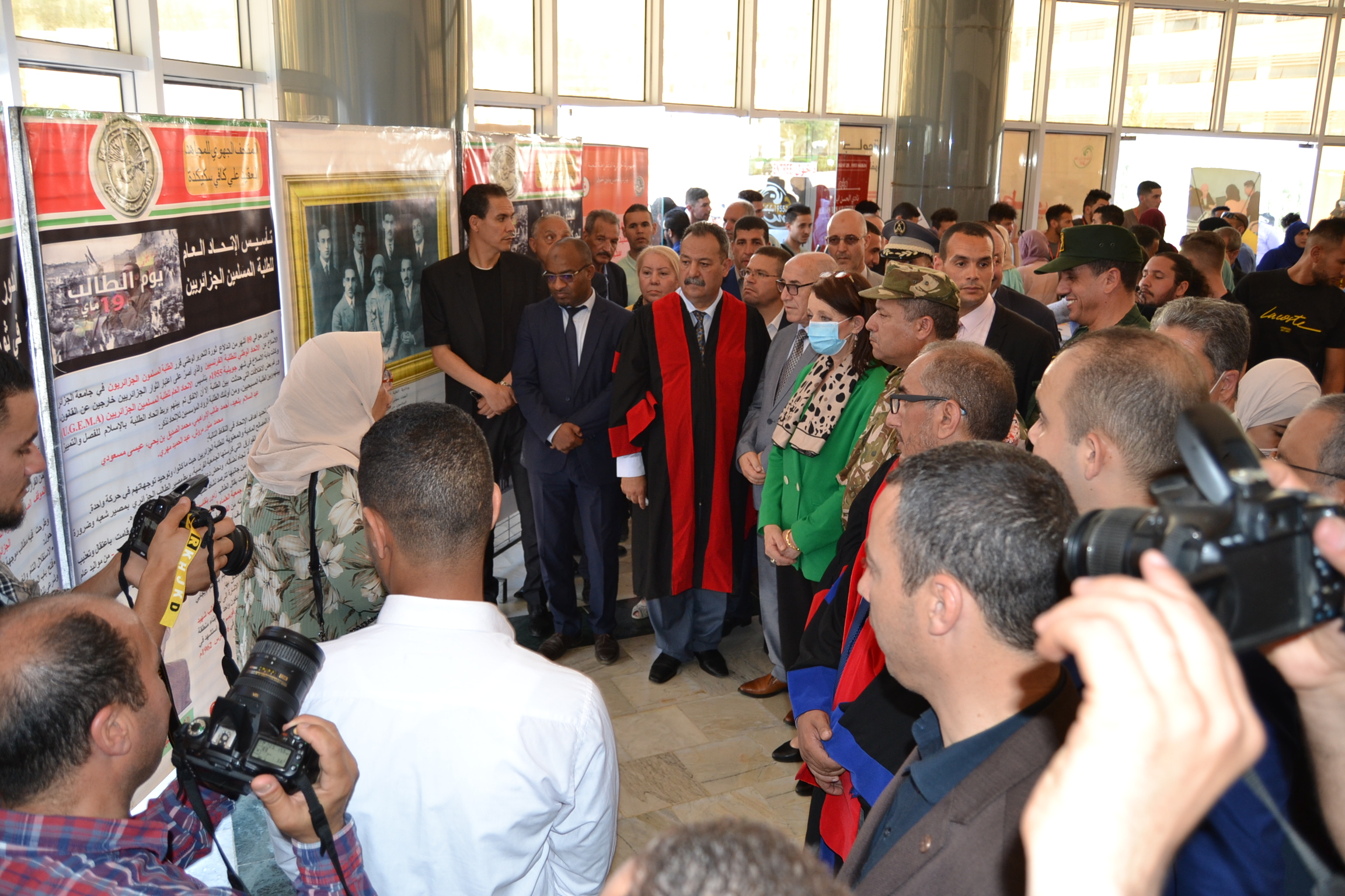 توافد طلبة جامعة 20أوت 1955- سكيكدة صباح اليوم 19 ماي 2022 إلى ساحة الجامعة أمام النصب التذكاري تلبية لدعوة السيد مدير الجامعة للإحتفال بالذكرى 66 ليوم الطالب داخل الحرم الجامعي، في حضور السلطات الولائية الأمنية و العسكرية و المدراء التنفيذيين للولاية على رأسهم السيدة والي ولاية سكيكدة و رئيس المجلس الشعبي الولائي و نواب المجلس الشعبي الوطني عن الولاية الى جانب الطاقم الاداري للجامعة برئاسة السيد مدير الجامعة .