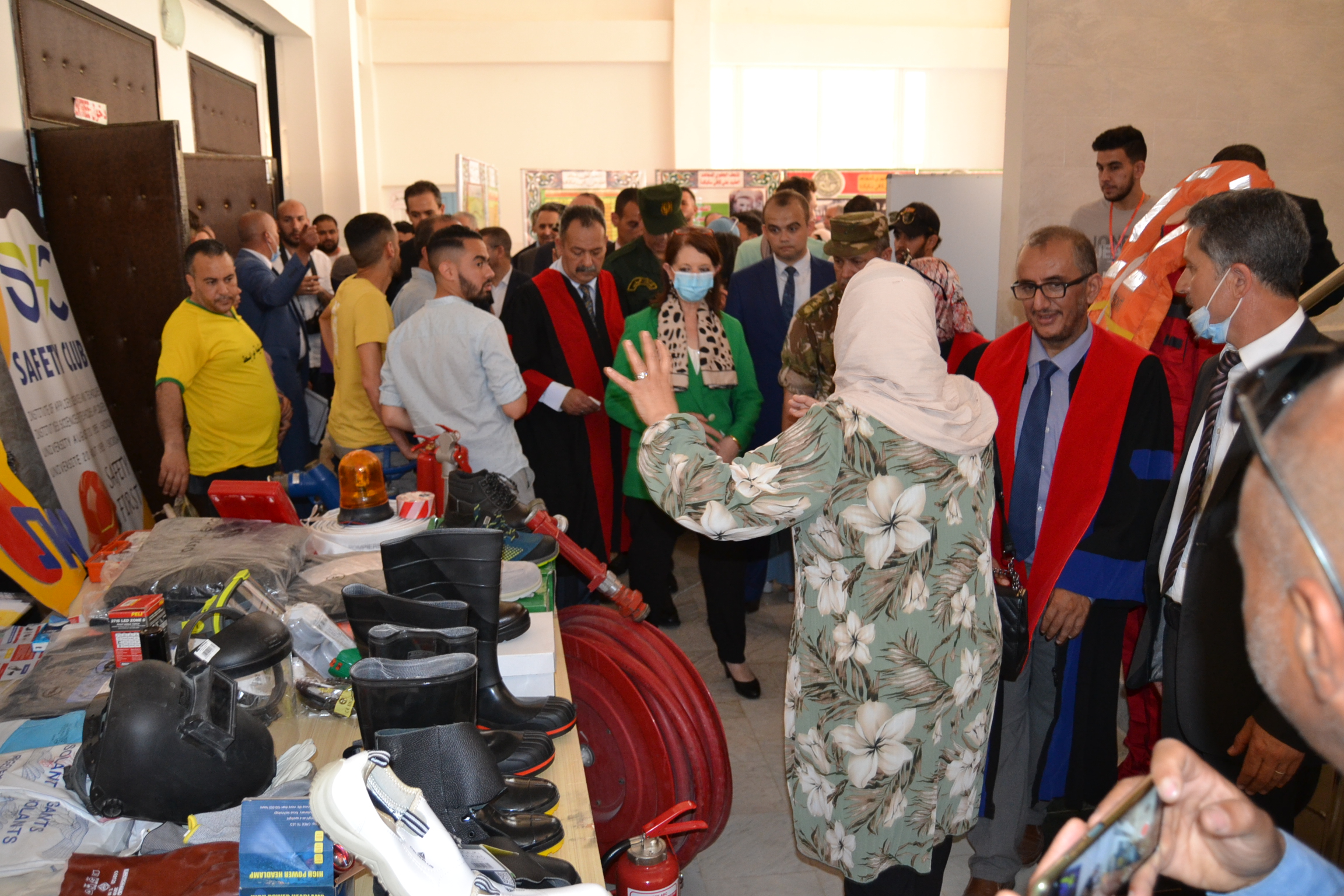 فبعد كلمة ترحيبية للسيد المدير الفرعي للأنشطة ذكّر فيها بالمعاني السامية التي يجب استخلاصها من تضحيات طلبة الامس و ما يجب الإقتداء به من طرف طلبة جيل اليوم وضع ممثلوا التنظيمات الطلابية و النوادي العلمية بمعية السيدة الوالي و رئيس المجلس الشعبي الولائي و السلطات الأمنية و العسكرية باقات من الورود على النصب التذكاري مع قراءة الفاتحة على أرواح الشهداء الأبرار،توجه الجمع مباشرة إلى قاعة المحاضرات الكبرى مقر الاحتفال أين جال الوفد بين أجنحة المعرض الذي اقامته النوادي العلمية النشطة بالجامعة الى جانب جناح خصص للمتحف الجهوي علي كافي ببهو القاعة حيث استمعت السيدة الوالي لشروحات الطلبة حول انجازاتهم و نشاطاتهم و تاريخ الحركة الطلابية.