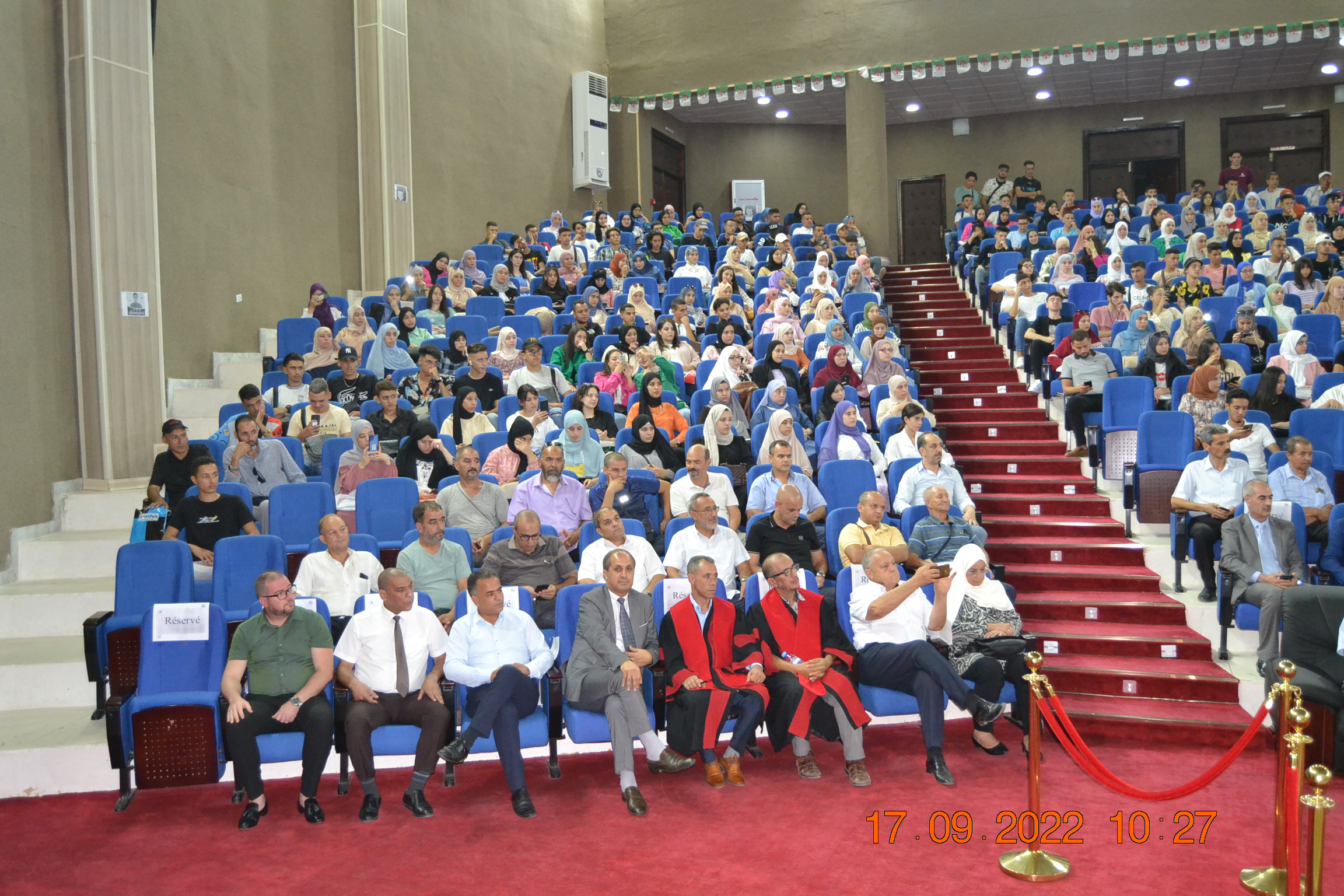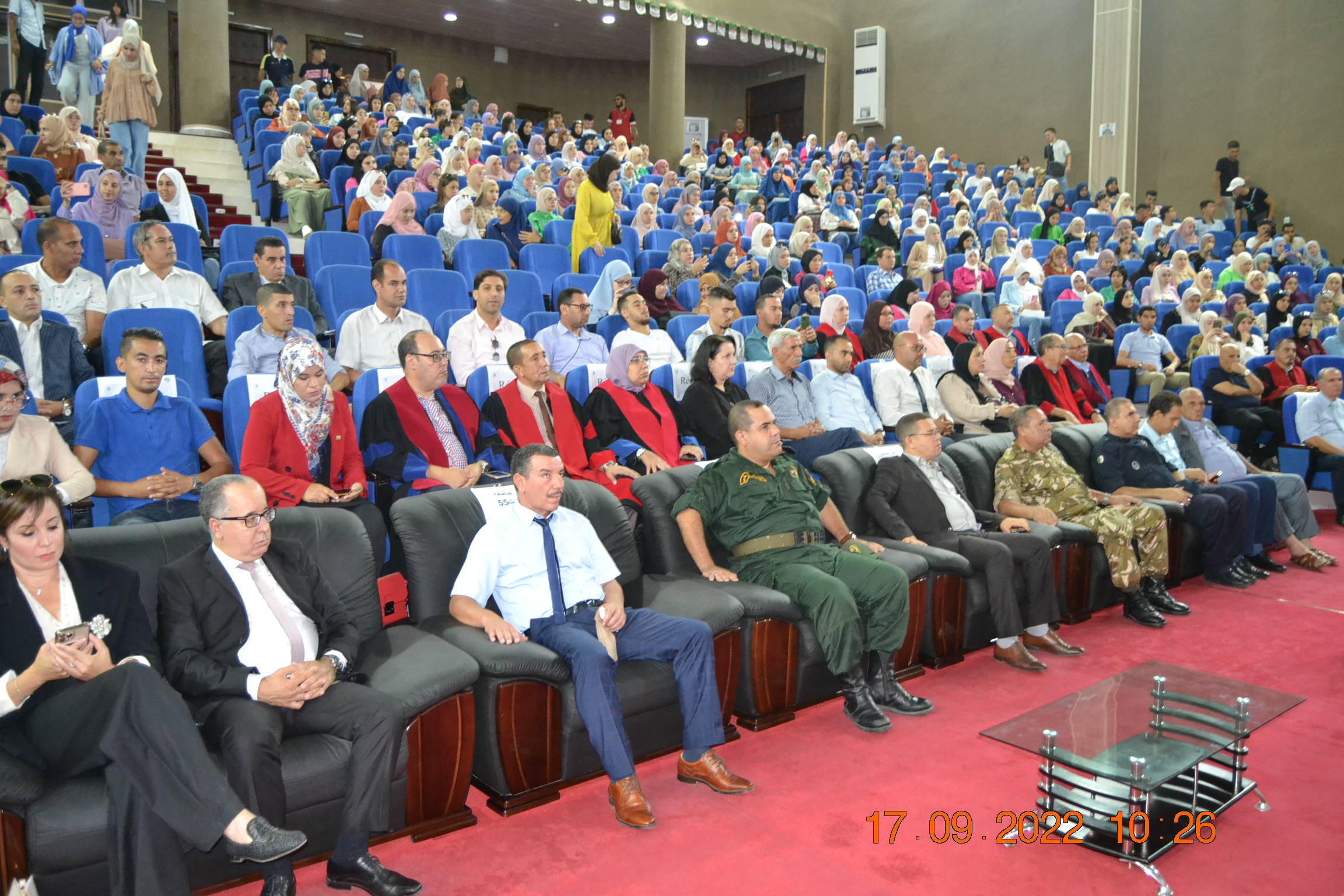 احتظنت قاعة المحاضرات الكبرى صباح اليوم السبت 17 سبتمبر 2022 مراسيم حفل افتتاح السنة الجامعية 2022/2023 و الذي ميزه حضور عدد غفير من الطلبة و الاساتذة .و قد شاركت السيدة والي الولاية الأسرة الجامعية هذا الحفل بحضورها رفقة ممثلي الغرفتين بالمجلس الشعبي الوطني ، السلطات الأمنية و المدنية للولاية ، المدراء التنفذيين للولاية و ممثلي الأسرة الثورية.