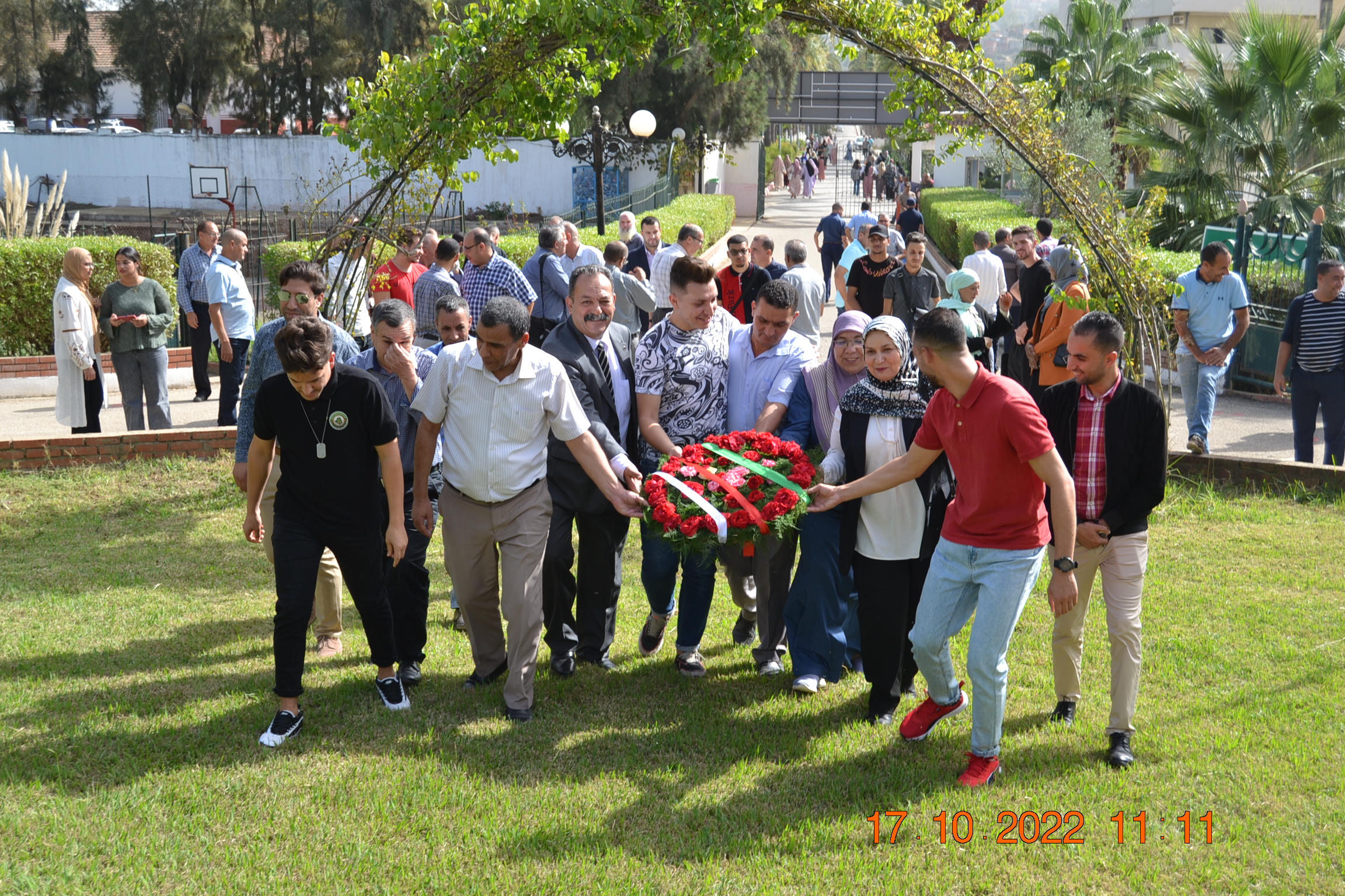 تذكيرا بإحدى المحطات الفاصلة في تاريخ الثورة الجزائرية و في الذكرى الواحدة و الستون لمظاهرات 17 أكتوبر 1961 و مجازر نهر السين بباريس في حق المتظاهرين الجزائريين وقف صباح اليوم الإثنين ممثلي التنظيمات الطلابية ، السيدات و السادة عمداء الكليات والسادة نواب مدير الجامعة على رأسهم السيد مدير الجامعة الى جانب بعض الطلبة وقفة للذكرى و الترحم على أرواح ضحايا هذه المظاهرات.
