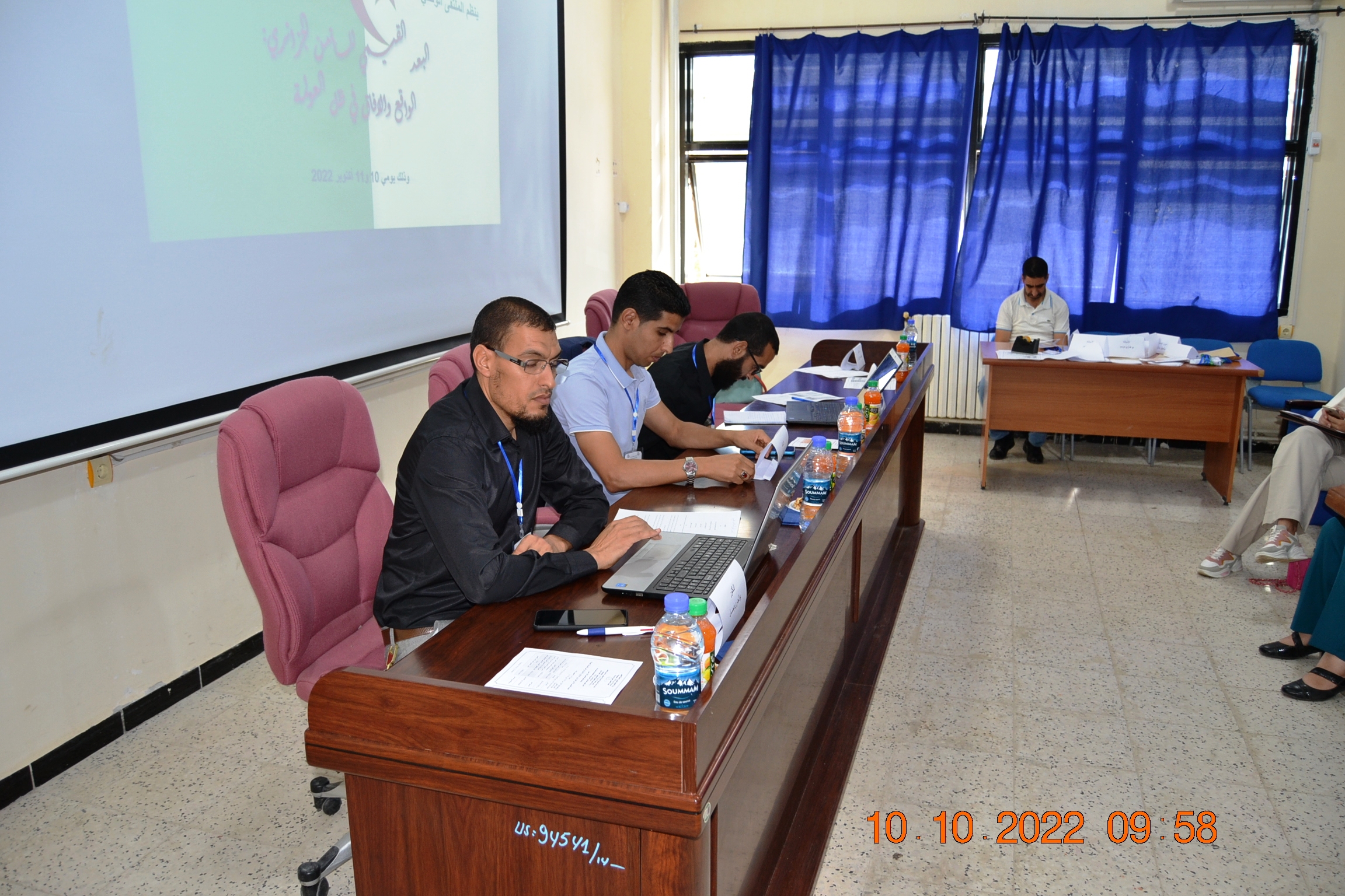تحتضن كلية الحقوق يومي 10 و 11 اكتوبر 2022 الملتقى الوطني الاول حول البعد القيمي الجزائري : الواقع و الآفاق في ظل تحديات العولمة من تنظيم فرقة بحث PRFU حول الأمن القومي الجزائري : التشريعات، القطاعات و السياسات أشرف على افتتاح فعاليات الملتقى السيد نائب مدير الجامعة للبحث ، و قد تم تسجيل مشاركة أساتذة من عدة جامعات عبر الوطن كجامعة الجزائر 3 ، جامعة ورقلة ، جامعة جيجل ، جامعة قسنطينة ، جامعة ام البواقي، جامعة عنابة اضافة الى مشاركة واسعة لاساتذة جامعة سكيكدة .