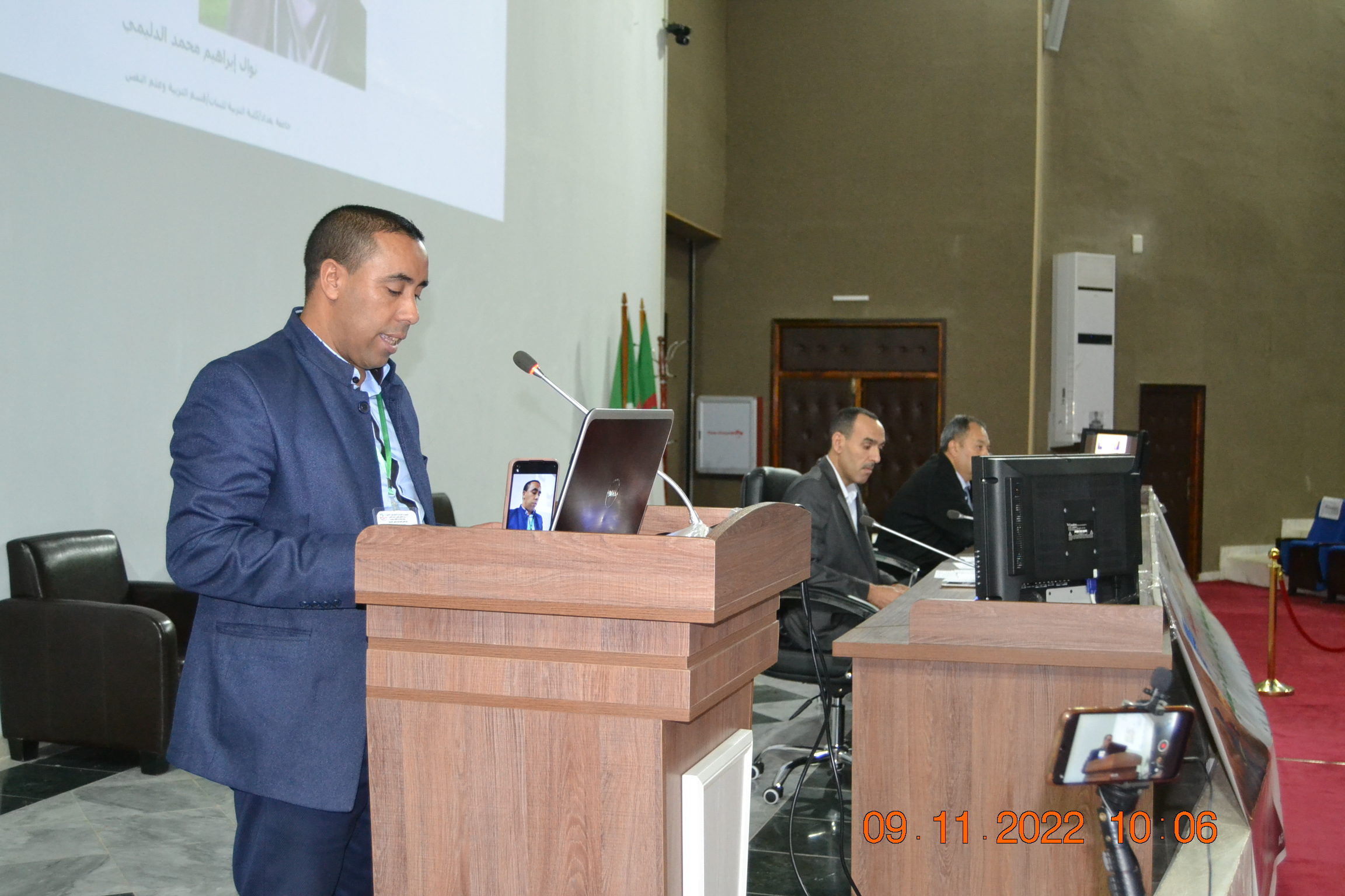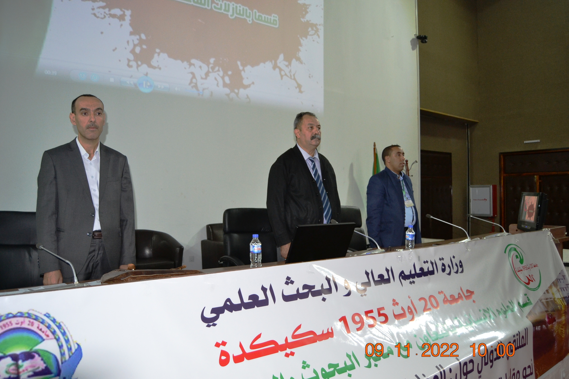 بعد اعلان السيد مدير الجامعة عن افتتاح أشغال الملتقى تم تكريم كل من الاستاذ بن عزوز محمد الطاهر من جامعة الاخوة منتوري و الاستاذ اسماعيل قيرة رئيس مخبر البحوث و الدراسات الاجتماعية بجامعة سكيكدة من قبل السيد مدير الجامعة عرفانا لهما بالمجهودات التي قدماها في سبيل العلم و مساهمتهما في تمثيل الجامعة الجزائرية في الملتقيات الدولية. و قد تم برمجت المداخلات الافتتاحية لكل من الأستاذ بن عزوز محمد الطاهر بعنوان: L’impact des risques naturels en Algérie face à l’urbanisme. تلتها مداخلة للأستاذ اسماعيل قيرة تحت عنوان : نحو رؤية اجتماعية لدراسة المخاطر الطبيعية.ثم مداخلة عن بعد موسومة الاشكالية التي تواجه فلسفة المخاطر الطبيعية للاستاذة نوال إبراهيم محمد الدليمي من جامعة بغداد.