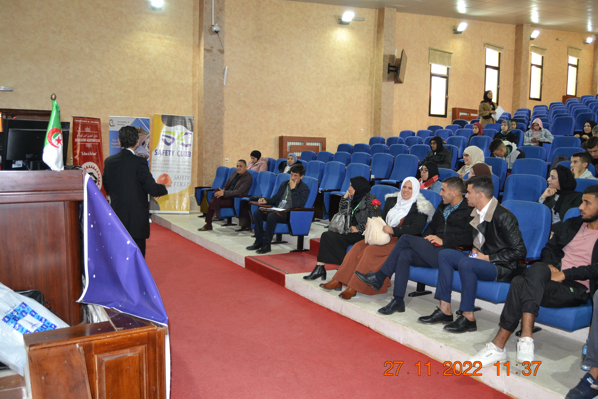 بالتنسيق بين المصلحة المشتركة للبحث –قطب التعميم النباتي- لجامعة 20 اوت 1955 –سكيكدة و مركز أبحاث الفلك والفيزياء الفلكية والجيوفيزياء   CRAAG   اشرف  صباح اليوم بقاعة المحاضرات بمجمع مسعود بوقدوم السيد نائب مدير الجامعة للبحث العلمي الاستاذ الدكتور عمارة عثماني على افتتاح اشغال  أيام الفلك بجامعة سكيكدة التظاهرة تحت عنوان: ما  وراء السماء ) لقاء فلكي في روسيكادا(