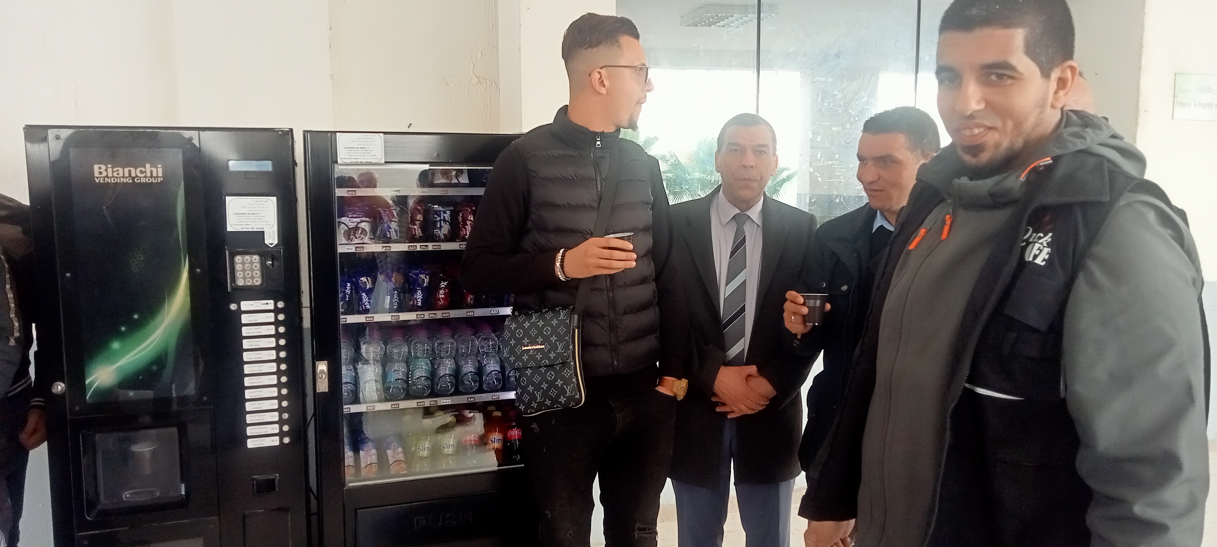 أشرف السيد مدير الجامعة صباح اليوم الاحد 11 ديسمبر 2022  رفقة اميني الفرعين النقابيين للاساتذة و العمال   UGTA على إنطلاق خدمة الموزع الآلي للمشروبات الساخنة و الباردة  بكلية العلوم الاقتصادية ،التجارية و علوم التسيير و العملية جارية لتثبيت الموزعات الآلية  في كل  الكليات لفائدة الطلبة و الأساتذة و العمال.