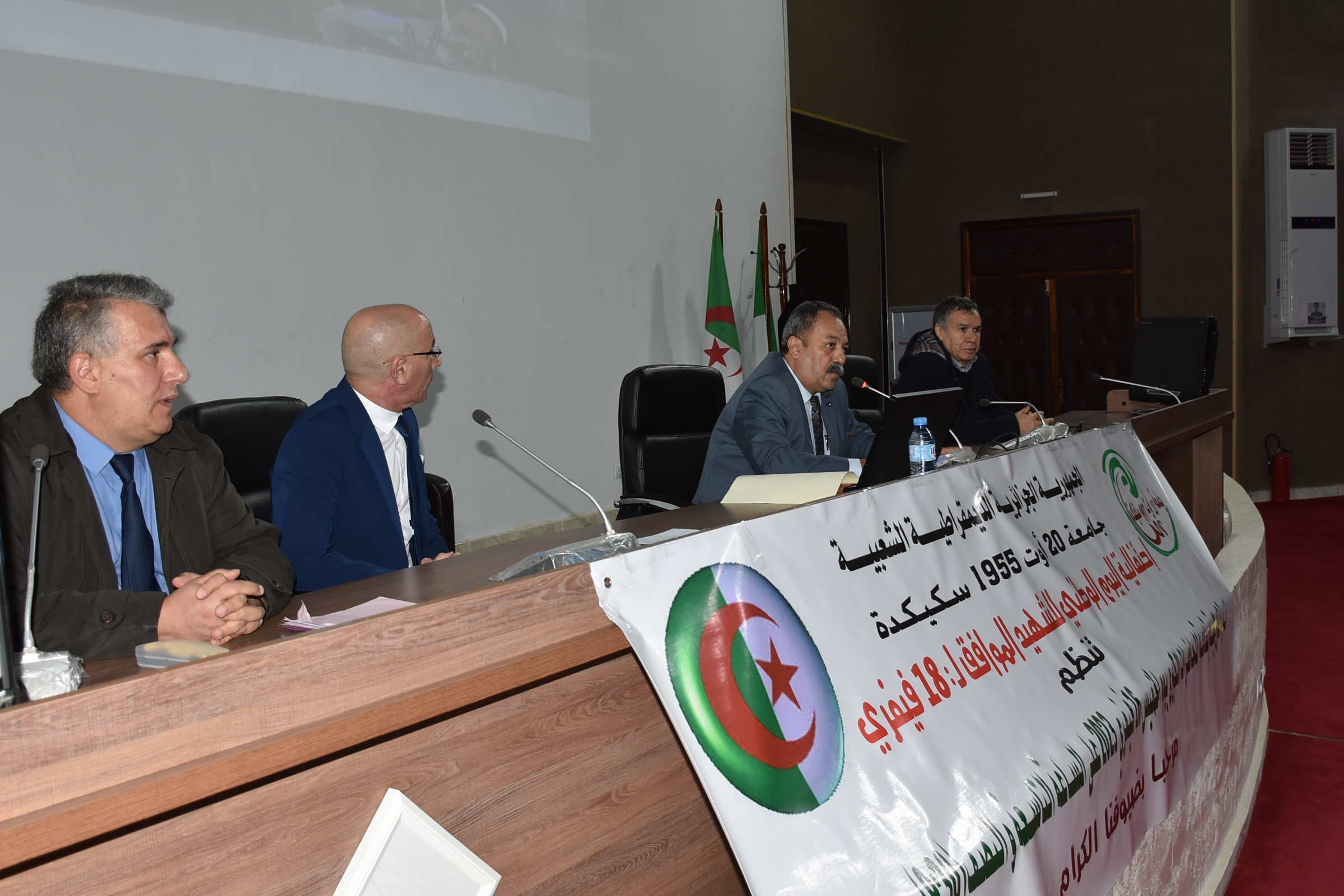توجه الجمع بعدها إلى قاعة المحاضرات الكبرى لحضور ندوة تاريخية من تنظيم المتحف الجهوي حيث افتتحها السيد مدير الجامعة بكلمة مقتضبة أبرز فيها بطولات الشهداء من أجل نيل الحرية التي ننعم فيها اليوم، تلاه ممثل عن الأمانة الولائية لمنظمة أبناء الشهداء . بالمناسبة تم تكريم أساتذة متقاعدين من أبناء الشهداء من جامعة سكيكدة و هم على التوالي: البروفسور اسماعيل قيرة ، البروفسور كمال بلمكر، الدكتور علاوة بن ضيف و الدكتور جمال يزلي نشط الندوة التاريخية كل من الاستاذ أحسن تليلاني بمداخلة حول صور الشهيد في الأدب الجزائري و الأستاذ رشيد هيدوقي بمداخلة بعنوان الموت من أجل تحرير الوطن أعلى درجات التضحية بالإضافة الى شهادات حية للمجاهد عمار يحي.