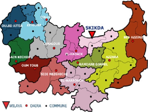 Territoire tellien et littoral (s'étend sur 413 768 Km2 et 130 Km de côte,la position centrale de la wilaya de skikda surlittoral de l'Est algérien, sa fonction portuaire et son rôle économique (zône industrielle,l'une des plus importante du Nord-Est de l'Algérie) lui confère une place privilégiée dans l'armature urbaine .Elle comprend plus de 800 000 habitants.