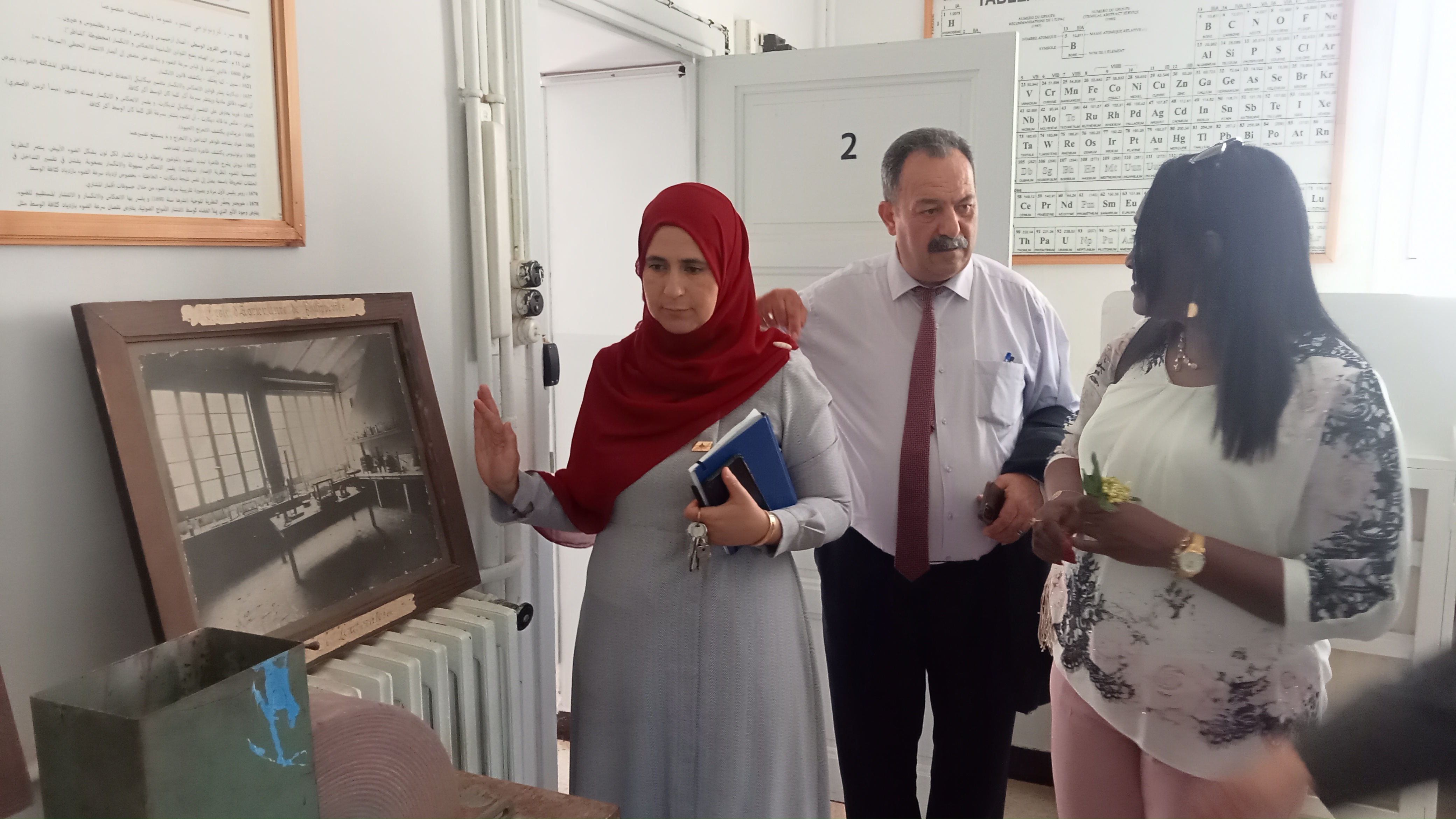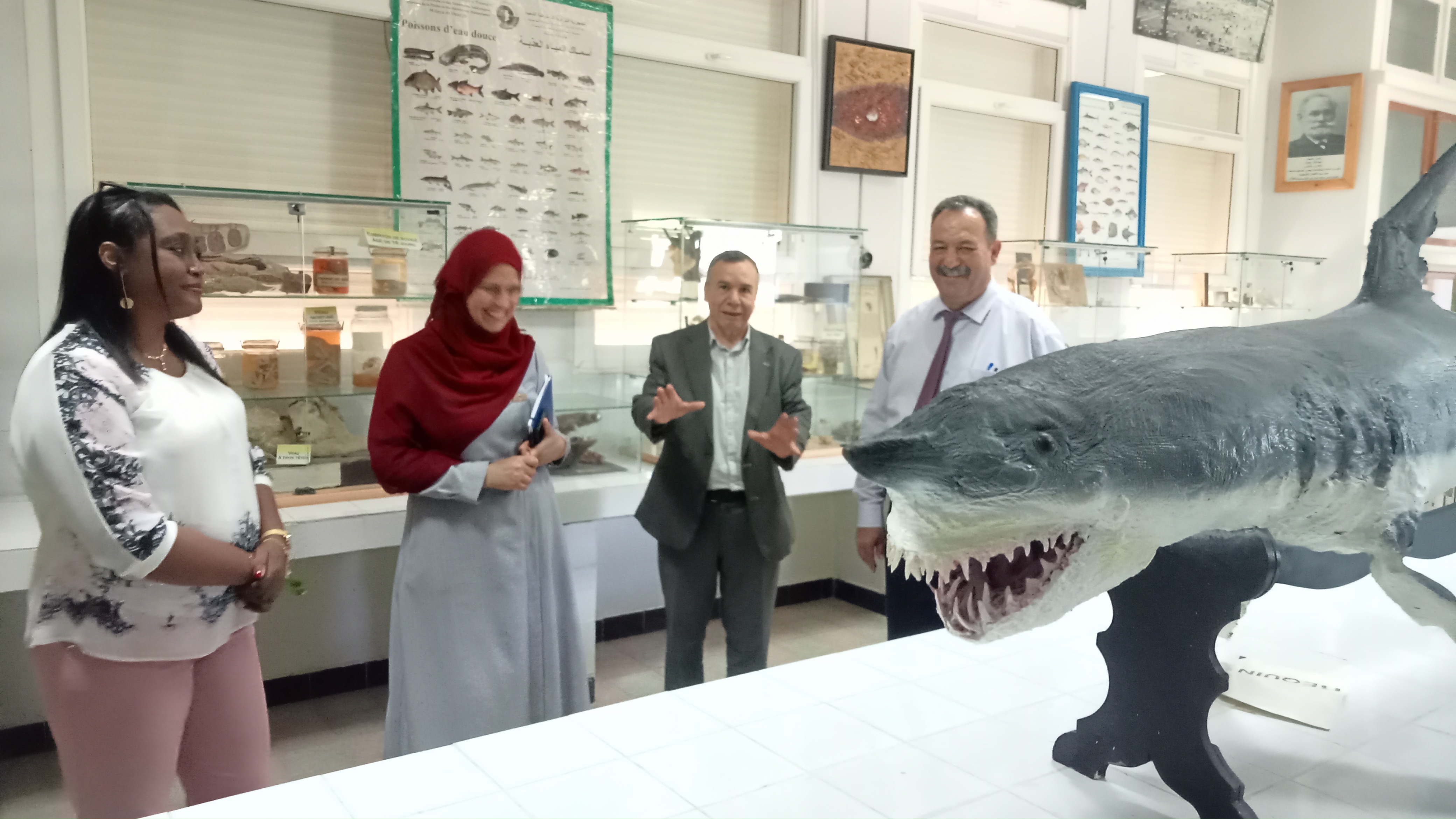 وفي ختام الزيارة توجهت السيدة بوفادي ياسمينة مختارية رفقة مدير الجامعة ونائب مدير الجامعة إلى حديقة ومتحف الجامعة الواقع بالمصلحة المشتركةللبحث قطب التعليم النباتي أين تلقت  شروحات عن تاريخ مايحتويه من ثراث علمي هام .